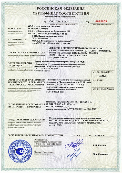 Цена на "Прибор охранно-пожарный УКД-2101 «Сириус»": по запросу